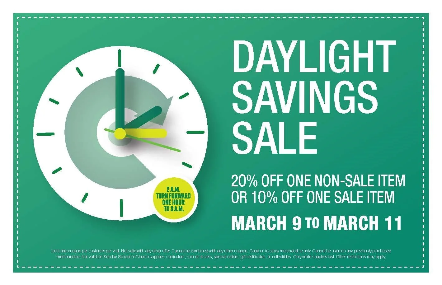 DAYLIGHT SAVINGS SALE - MARCH 9-11